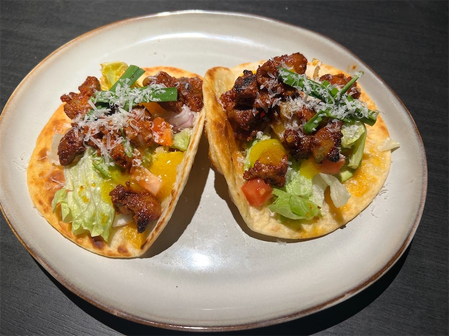 The tacos were packed with punchy flavours and were mighty impressive. The Korean fried chicken taco with sweet chilli sauce ($24 for two) was colourful, crunchy and zingy. The chunks of chicken were tender and moist.