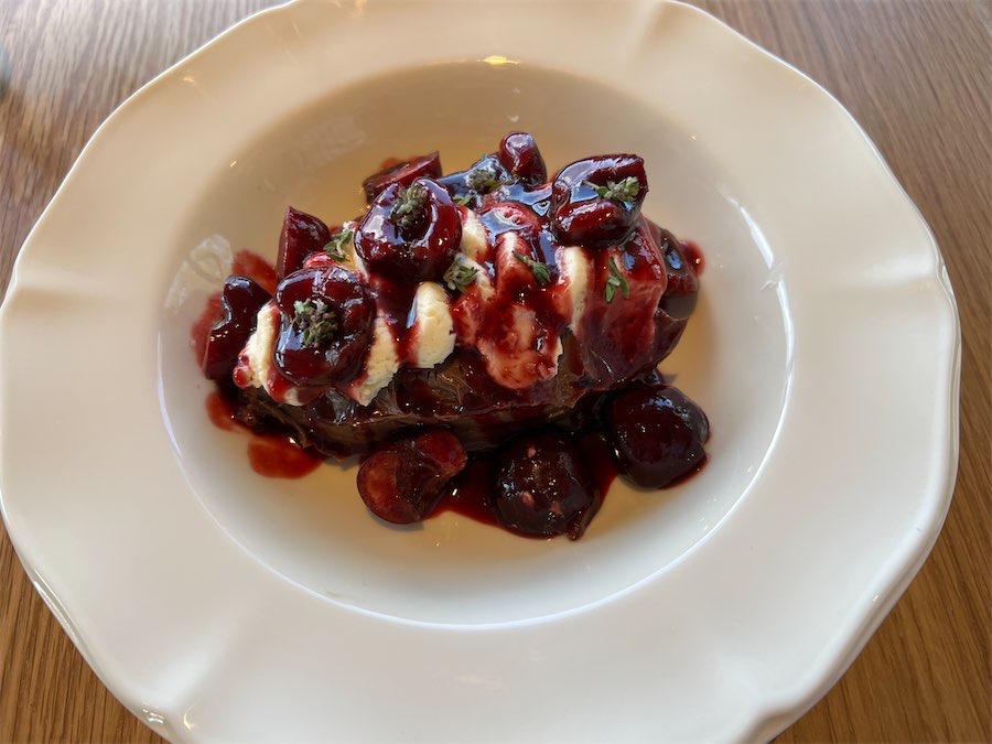 We don’t always indulge in desserts but got a sneak peek of a couple passing by and couldn’t resist. The caramel flan was perfection ($18). The chocolate ganache, grilled cherries, lemon thyme and whipped cream ($22) a dream dessert, with stunning flavours. We agreed the tiramisu wasn’t the best we have had ($20). It wasn’t as firm as we would have liked.