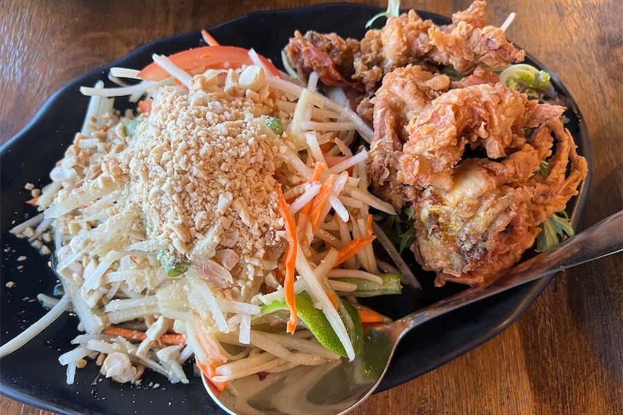 Another tasty dish is the green papaya salad. The Som Tum Thai ($23.90) is packed with goodness, and we added sensational soft shell crab for an additional $12 (grilled chicken as an add-on is $8).