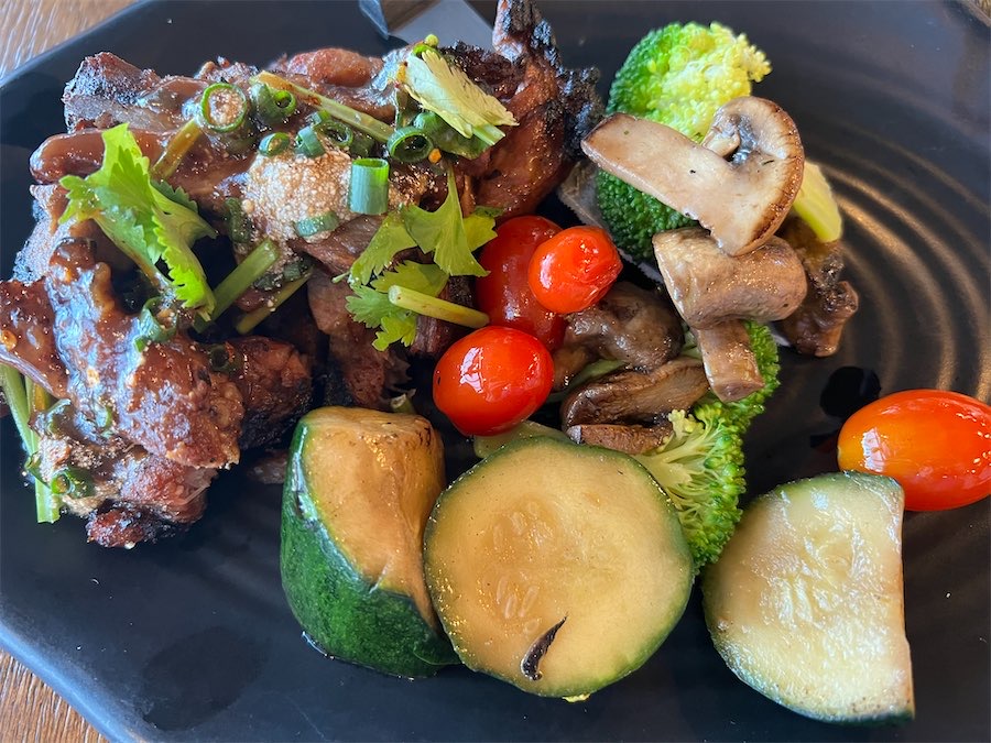 My friend adores the marinated and then grilled pork neck, which I had never road tested ($29.90). It is served with a colourful array of grilled veggies and a tangy-sweet-sour tamarind sauce, with a precise and perfect flavour profile. A couple of pieces of the neck were slightly tough, but the vast majority were super tender.