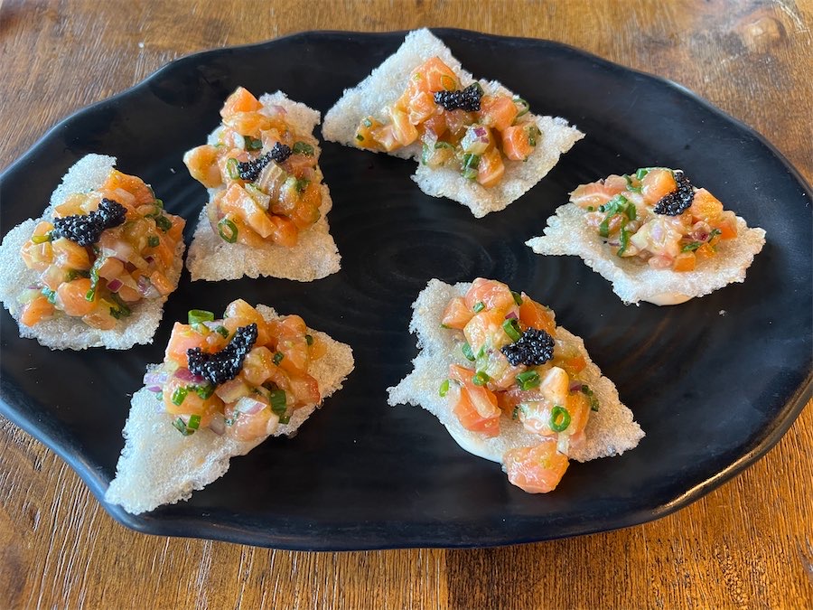 They’re on the “special entree” section of the menu, and with good reason. They look as delicious as they taste… the fresh salmon is finely diced and so, too, are tomatoes and onion. The mixture is carefully placed on top of crunchy rice crackers and fish roe adds colour and lovely pops of saltiness.