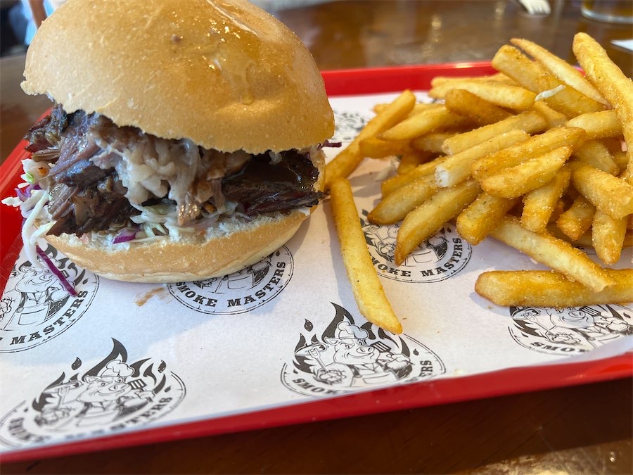 It’s hand’s-on eating at Smoke Masters BBQ with finger-lickin’ ribs, gravy rolls dripping with goodness, and thick burgers overflowing with juices.