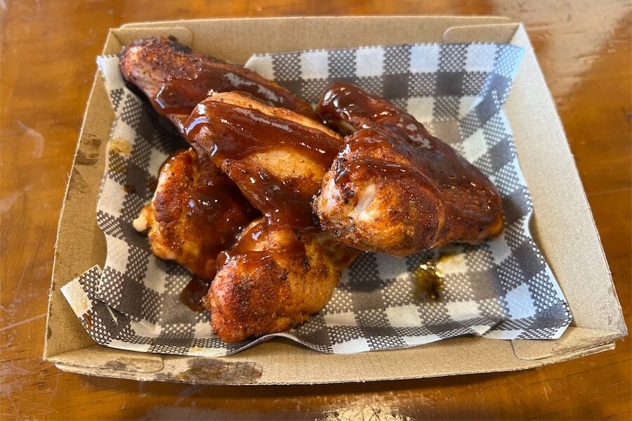 We started our carnivore adventure ordering smoked wings. We were offered medium or asked if we wanted to ramp matters up. We sweated it out with the HOT, HOT, HOT ones, but were forewarned. They were sticky, tender and fun.