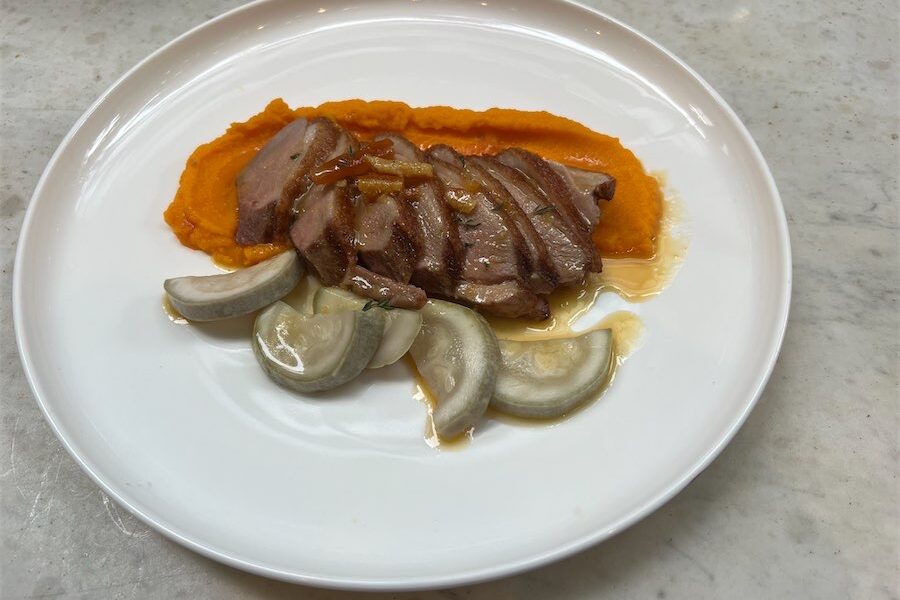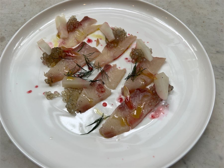 Cured kingfish was next ($24) and it was sensational with pepper berry, radish and buddha’s hand – a citrus fruit, segmented into finger-like sections, featuring a lovely, lemon-like floral aroma.